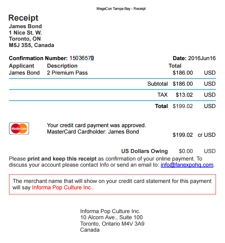 Receipt of Online Ticket Solution